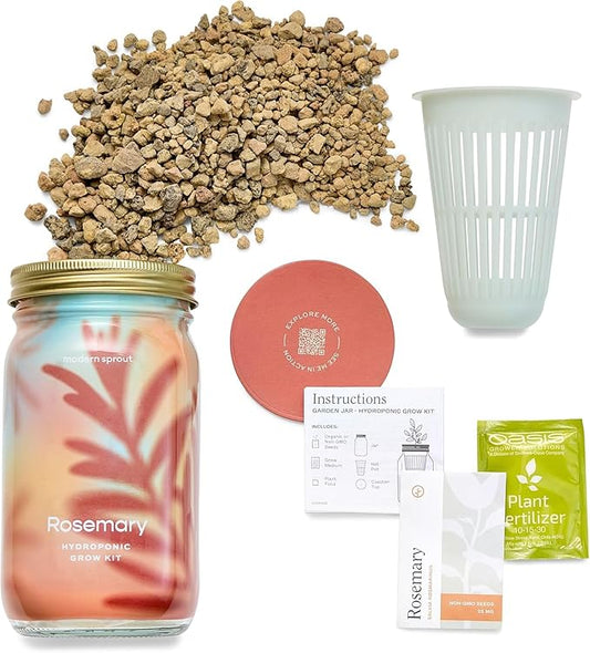 Modern Sprout Mason Garden Jar - Self-Watering Hydroponics Growing System Kit with Organic Herb Seeds - Jar Planter for Indoor Herb Garden - Seed Starter Kit - Home Decor & Gifting - Rosemary