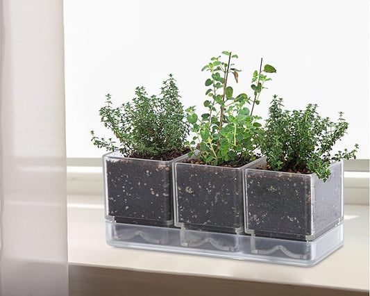 D'vine Dev Herb Garden Planter Set, Plastic Plant Pots with Drainage and Saucer, Indoor Succulent Cactus Vegetable Pot for Windowsill, Garden Balcony, Clear, Set of 1, 76-V-D-1