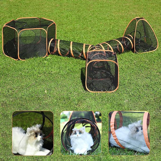 5 in 1 Outdoor Cat Tents with Tunnels for Outside - Cat Enclosures for Indoor Cats with 1 Cat Harness and Leash for Walking, 1 Cat Wand Toys, 3 Cat Feather Toys - Cat Playpen and Indoor Catio