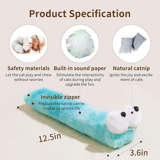 Interactive Natural 3 PK Catnip Toy, with Rattle, Bite Resistant, for All Ages Indoor Cat, Soft Caterpillar Toys, Fluffy Kitten Toy