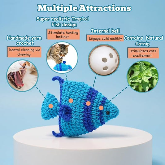 Cat Toys with Catnip & Bell Soft Natural Cat Nip Toys for Indoor Cats Hand Crocheted Interactive Kitten Fish Toys