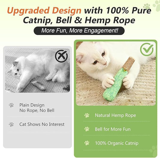 3 Pack Catnip Toys for Cats, Funny Cat Toys with Dental Rope & Fun Bell,100% Pure Organic Catnip Toys,Cat Chew Toy Bite-Resistant Kitten Teething Chew Toys,Anxiety Relief Cat Toys for Indoor Cats