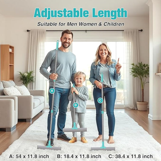 Double-Sided Pet Hair Removal Tool,Adjustable Height Carpet Pet Hair Removal Silicone Broom,Dog Cat Hair Remover Broom for Carpets, Floor Mats,Couch,Floor Squeegee (Blue Carpet Rake)