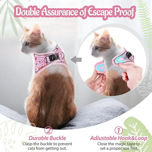Cat Harness and Leash Escape Proof for Walking, Adjustable Soft Kitten Harness with Reflective Straps Step in Cat Vest Harness for Small Kitten and XS Dogs (Pink, M-Chest(14.5"-16.3"))