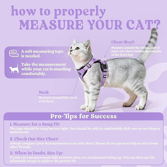 Cat Harness and Leash Escape Proof for Walking, Adjustable Soft Kitten Harness with Reflective Straps Step in Cat Vest Harness for Small Kitten and XS Dogs (Purple, M-Chest(14.5"-16.3"))