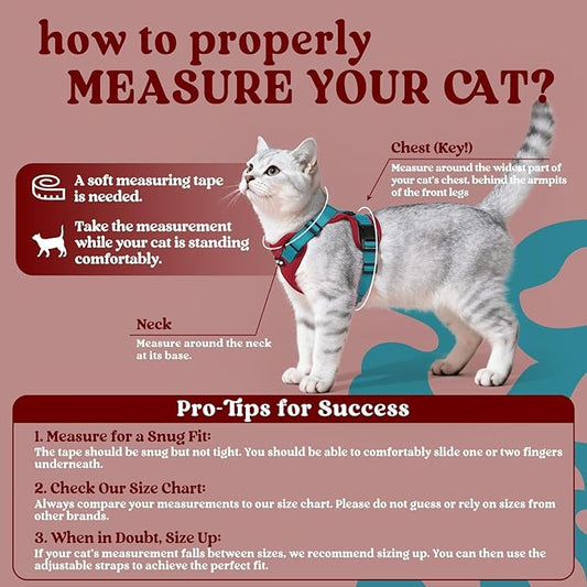 rabbitgoo Cat Harness and Leash for Walking, Escape Proof Soft Adjustable Vest Harnesses for Cats, Easy Control Breathable Reflective Strips Jacket, Red & Teal, M