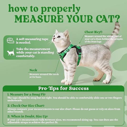 rabbitgoo Cat Harness and Leash for Walking, Escape Proof Soft Adjustable Vest Harnesses for Cats, Easy Control Breathable Reflective Strips Jacket, Grass Green,S