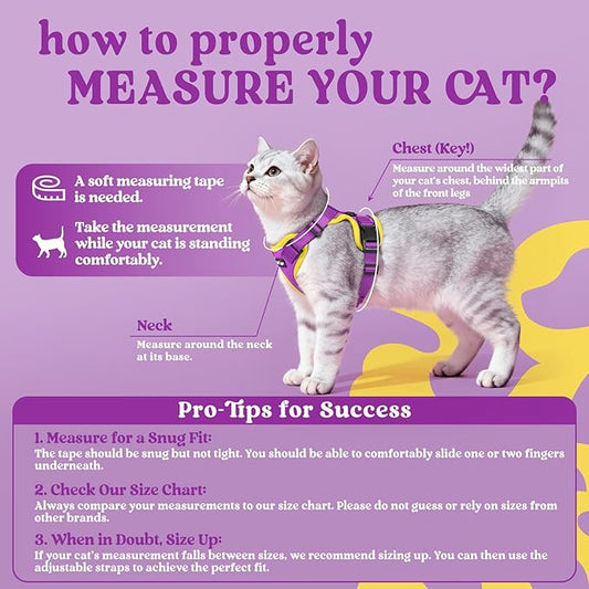 rabbitgoo Cat Harness and Leash for Walking, Escape Proof Soft Adjustable Vest Harnesses for Cats, Easy Control Breathable Reflective Strips Jacket, Purple&Yellow, M