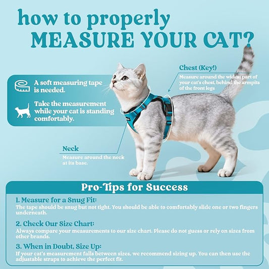 rabbitgoo Cat Harness and Leash for Walking, Escape Proof Soft Adjustable Vest Harnesses for Cats, Easy Control Breathable Reflective Strips Jacket, Teal, S