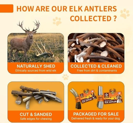 Tibetan Elk Antler for X-Large Dogs, Grade-A, Premium Antler Chews, Naturally shed Healthy & Longer Lasting Aggressive chewers, USA Product (Whole)
