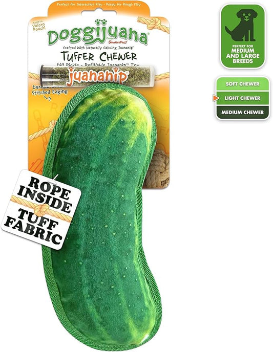 Doggijuana Tuffer Chewer Plush Dog Toy | Funny Dog Toy Plush with Juananip Catnip for Dogs | Calming Aid for Dogs | Interactive Squeaky Chew Toy for Play (Dill Pickle)