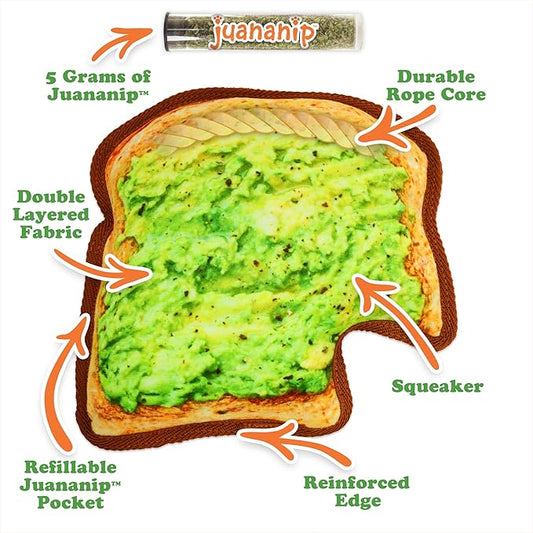 Doggijuana Tuffer Chewer Plush Dog Toy | Funny Dog Toy Plush with Juananip Catnip for Dogs | Calming Aid for Dogs | Interactive Squeaky Chew Toy for Play (Avocado Toast)