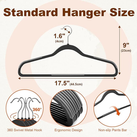 HOUSE DAY Heavy Duty Plastic Hangers 50 Pack, Non Slip Clothes Hangers with Rubber Grip and 360° Hook - Thin Plastic Hanger Space Saving - Coat Hanger Black, Closet Organizer for Shirt, Pants, Suit