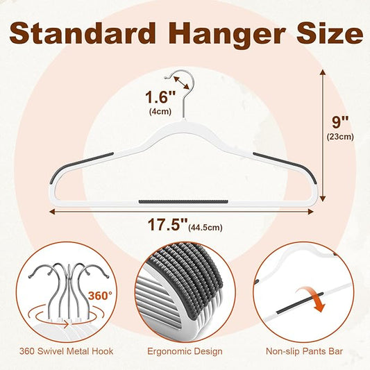 HOUSE DAY Heavy Duty Plastic Hangers 100 Pack, Clothes Hangers with Non-Slip Rubber Pads - 0.2 Inch Thin Space Saving Coat Hanger for Closet Organizer, 360° Swivel Hook for Shirts, Pants, Suit (White)