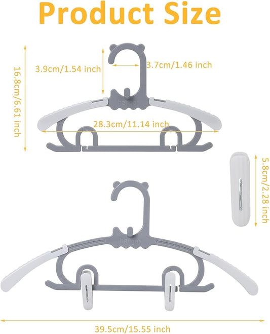 30 Pack Plastic Hangers with 16 Clips, 11-15 inch Adjustable Clothes Hangers, Durable & Non-Slip, Space Saving Coat Hanger for Pants, Jackets and Dress (Grey)