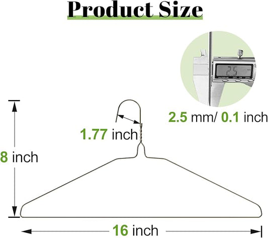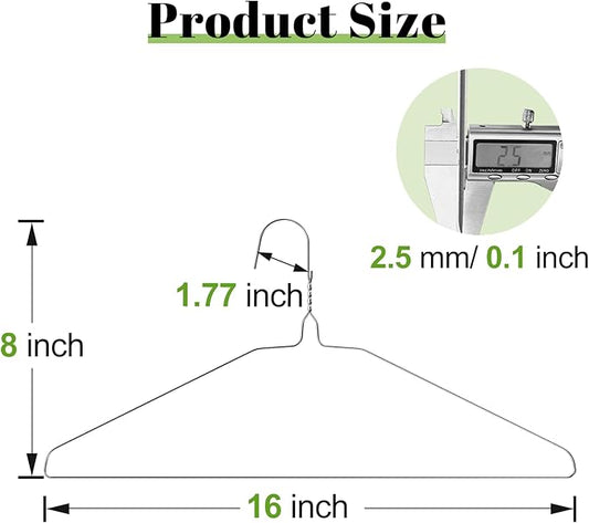 Wire Metal Clothes Hangers Bulk 100 Pack, 16 Inch 12 Gauge Standard Size, Slim Space Saving for Coat Suits Shirts Pants Skirts, Non Slip, Silver