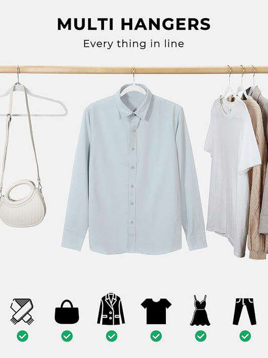 SereneLife 30 Pack Wooden Coat Hangers – Durable Suit Hangers with 360° Swivel Hook & Notches – Slim Design for Shirts, Jackets, Dresses, and More