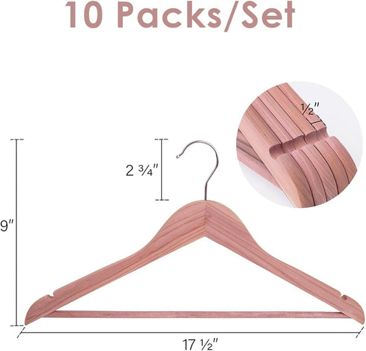 StorageWorks Cedar Wood Clothes Hanger 10 Pack, Wooden Coat Hangers for Shirts, Jackets, Pants, Suits, Sweaters