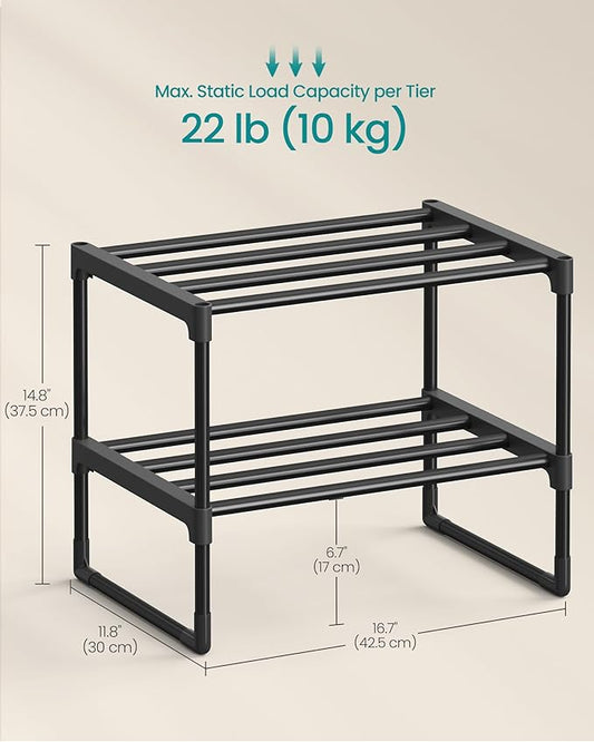 SONGMICS Shoe Rack, 2-Tier Shoe Organizer, Metal Storage Shelf, Upright or Upside Down, for 3-6 Pairs, Stackable, for Entryway, 11.8 x 16.7 x 14.8 Inches, Black ULSA002B01