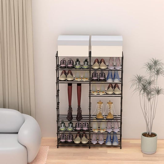 pickpiff Free Standing Shoe Racks - 19.5 Inch Black Metal Boot Rack Organizer Tall Boots for Dorm Room, Closet, Entryway, Bedroom, Patio Outdoor, Hallway, Black, Shoe Storage Fit for 8 Pairs