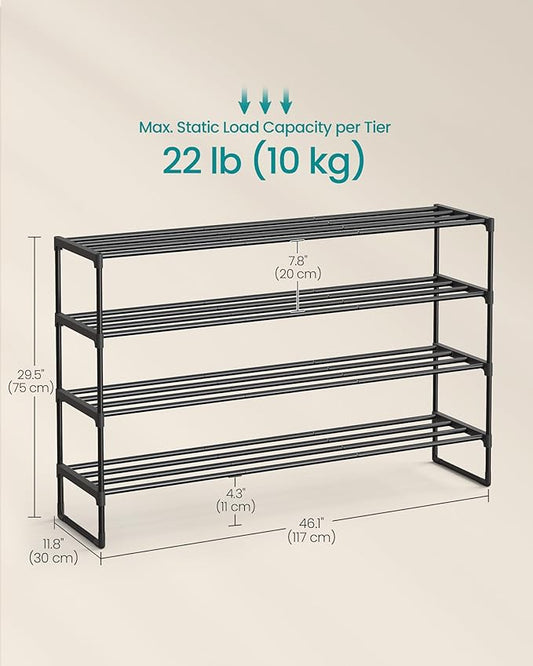 SONGMICS Shoe Rack, 4-Tier Shoe Organizer, Metal Storage Shelf, Upright or Upside Down, for 25-30 Pairs, Stackable, for Entryway, 11.8 x 46.1 x 29.5 Inches, Black ULSA034B01