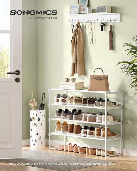 SONGMICS Shoe Rack, 4-Tier Shoe Organizer, Metal Storage Shelf, Upright or Upside Down, for 20-25 Pairs, Stackable, for Entryway, 11.8 x 36.2 x 29.1 Inches, Pearl White ULSA014WK01