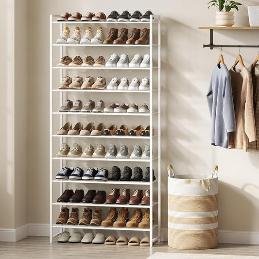 Shoe Rack for Closet, Metal Shoe Organizer, 10 Tier Garage Shoe Rack Max Holds 50 Pairs,Shoe Storage Shelf,Entryway,White