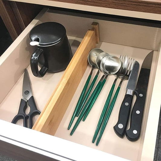 VaeFae Adjustable Bamboo Drawer Dividers, Expandable Drawer Organizer for Kitchen, Bedroom, Bathroom, Dresser and Office, 6-Pack