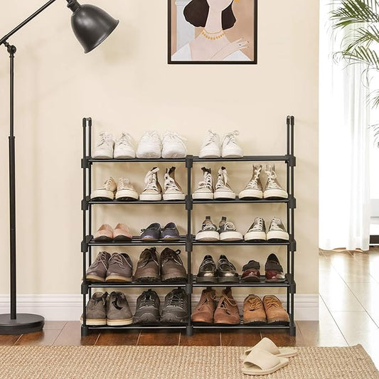 SONGMICS Shoe Rack, 10-Tier Shoe Organizer, Metal Rack for Garage, Set of 2, 5-Tier Stackable Shelf, with Adjustable Flat or Angled Shelves, 40-50 Pairs, Ink Black ULMR010B01