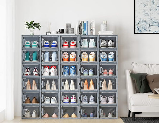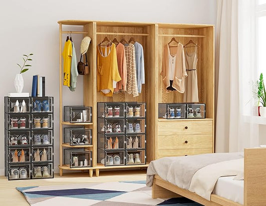 Shoe Storage, 12 Pack X-Large Shoe Organizer for Closet, Shoe Boxes Clear Plastic Stackable Shoe Storage Boxes for Size 13