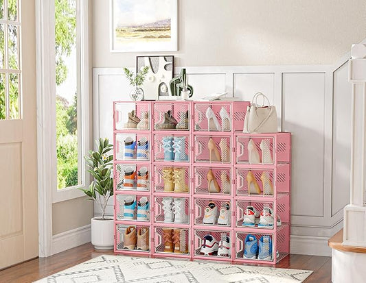 Shoe Slots Organizer, 20PCS Adjustable Double Layer Stack Shoe Rack, 50% Space-Saving Storage Rack Holder, Transparent