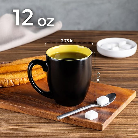 GBHOME 12oz Coffee Mugs Set of 6, Large Ceramic Coffee Mugs for Man, Woman, Dad, Mom, Modern Coffee Mugs Set with handle for Tea/Latte/Cappuccino/Milk/Cocoa. Dishwasher&Microwave Safe,Yellow