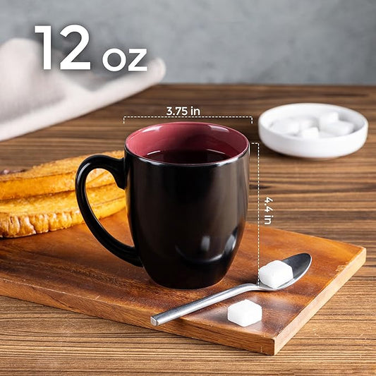 GBHOME 12oz Coffee Mugs Set of 6, Large Ceramic Coffee Mugs for Man, Woman, Dad, Mom, Modern Coffee Mugs Set with handle for Tea/Latte/Cappuccino/Milk/Cocoa. Dishwasher&Microwave Safe,Red