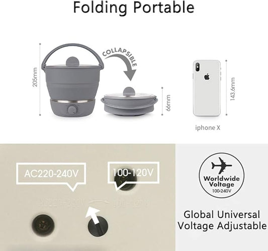 Foldable Electric Travel Kettle, Dual Voltage Portable Electric Kettle, Collpasible Electric Kettle, Food Grade Silicone Tea Kettle, Suitable for 110V & 220V