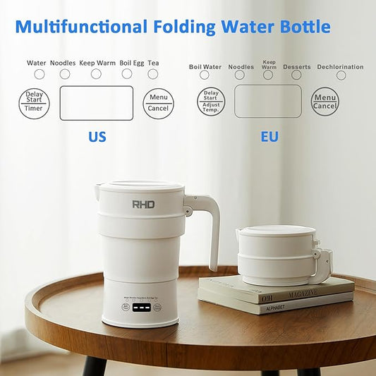 Travel Foldable Electric Kettle, 700ML Hot Water Kettle with Multifunctional Panel, Collapsible Small Boiling Water Kettle with Keep Warm & Delay Start, BPA-Free, 600W, 304 Stainless Steel, White