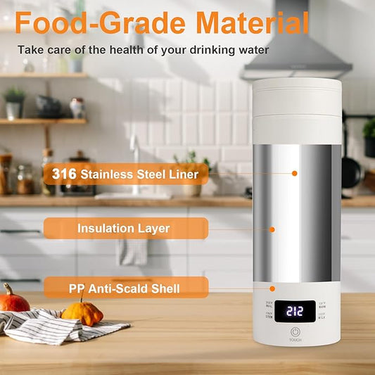 Portable Travel Electric Kettle 400ML,USB Rechargeable Stainless Steel Hot Water Boiler with Dual 3000mAh Battery