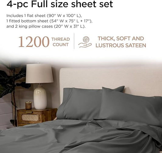 Threadmill Luxury Supima Cotton Sheets, Luxury 1200 Thread Count Soft 100% Cotton Sheets for Full Size Bed, 4 Pc Dark Grey Bed Sheets Full Set, 5-Star Hotel Quality Deep Pocket Bed Sheets Set