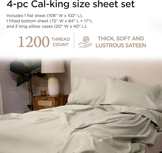 Threadmill California King Sheets, Certified American Supima Cotton Sheets, 1200 Thread Count Hotel Quality, 4 Piece Luxury Bed Sheets Set with Elasticized Extra Deep Pocket, Taupe