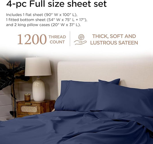 Threadmill Luxury Full Size Sheets for Full Size Mattress, 1200 Thread Count Supima Cotton Sheet, 5-Star Hotel Quality 4 Piece Bed Sheets with Extra Deep Pocket, Folkstone Blue