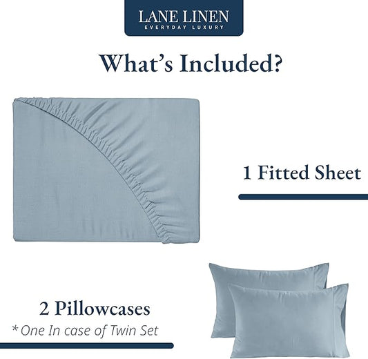 LANE LINEN King Size Fitted Sheet, 100% Organic Cotton, 3-Piece Set (1 Fitted Sheet,2 Pillowcases), Percale Weave, Ultra Soft, Breathable,Fits Mattress Upto 15" Deep - Estate Blue (No Flat Sheet)