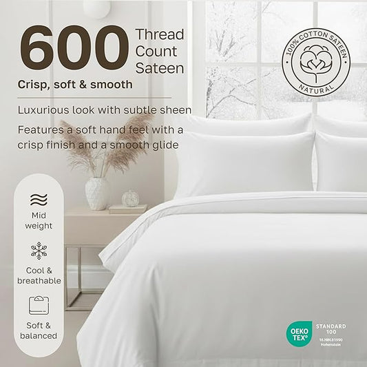 THREAD SPREAD 100% Egyptian Cotton Sheet Set Pack of 2 Full Size - 600 Thread Count White Luxury Sheet Full Size, Soft, Cooling Hotel Luxury Bed Sheets, Fits Mattress Upto 18"