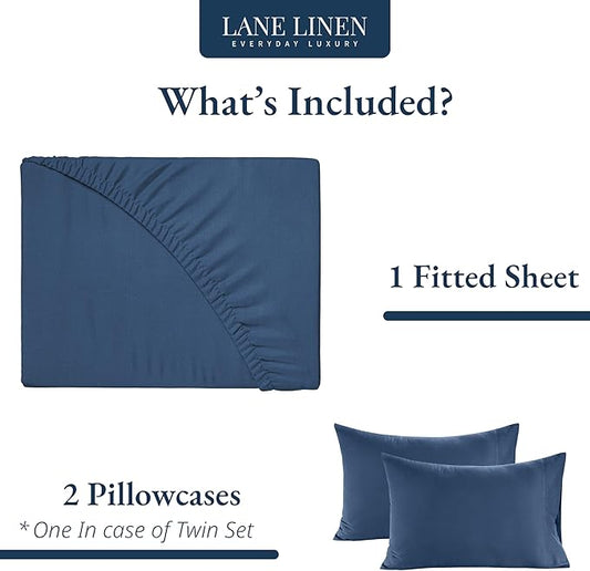 LANE LINEN Full Size Fitted Sheet, 100% Organic Cotton, 3Pc Set (1 Fitted Sheet,2 Pillowcases), Percale Weave, Bottom Sheet, Breathable, Fits Mattress Upto 15" Deep - Navy(No Flat Sheet)