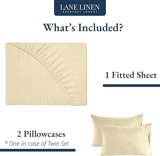 LANE LINEN Twin XL Fitted Sheet, 100% Organic Cotton 2-Piece Set (1 Fitted Sheet, 1 Pillowcase), Percale Weave, Bottom Sheet, Soft, Breathable, Fits Mattress Upto 15" Deep - Vanilla (No Flat Sheet)