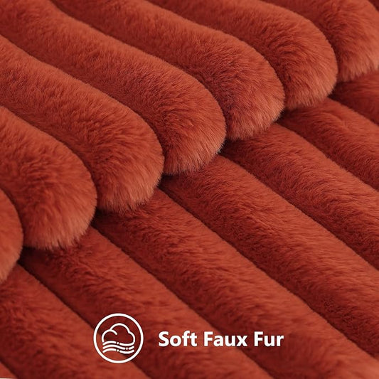 decorUhome Faux Fur Spring Throw Pillow Covers 12x20 Set of 2, Decorative Soft Plush Striped Lumbar Neutral Couch Pillow Covers with Velvet Back for Sofa, Bed, Living Room Home, Rust