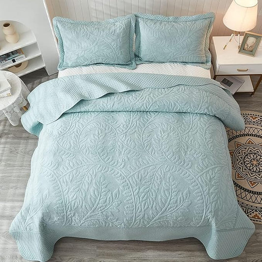 MarCielo 100% Cotton Quilt Set - 3-Piece Embroidered Farmhouse Bedspread & Shams, All-Season Breathable Bedding(Aruba Blue,King)