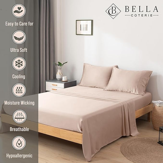 Bella Coterie Luxury Bamboo Viscose Queen Size Sheet Set | 100% Organically Grown | Ultra Soft | Cooling for Hot Sleepers | 18" Deep Pocket [Dusty Rose]