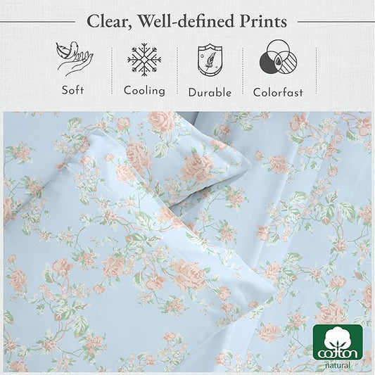 California Design Den Printed Twin XL Sheet Sets - 400 Thread Count Sateen, Natural 100% Cotton Sheets, Deep Pockets, and Durable Bedding Set - Polka Dot