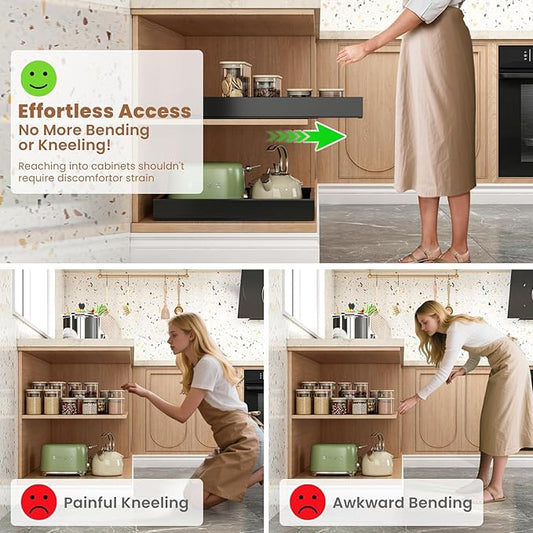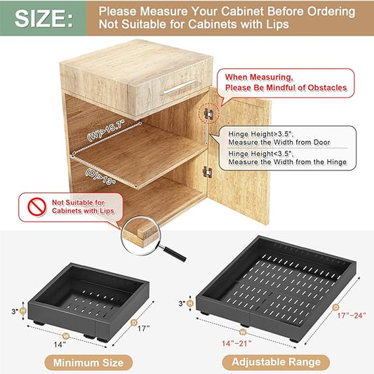2Pc Pull out Cabinet Organizer,Width (14"-21"),Depth(17"-24") Expandable with 3 Rails,No Drill Roll out Drawers,Adhesive Sliding Drawers,Slide out Shelves for Cabinets Without Lip,Kitchen,Pantry,Black