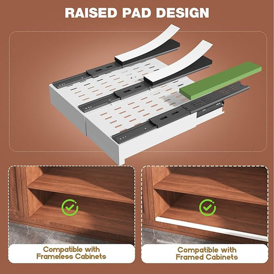 2 Pack Pull Out Cabinet Organizer Expandable Width(11"-16") and Depth(13"-17"),Slide Out Drawers With Raising Pad for Framed Cabinets,No Drill Roll Out Shelves for kitchen,Bathroom,White