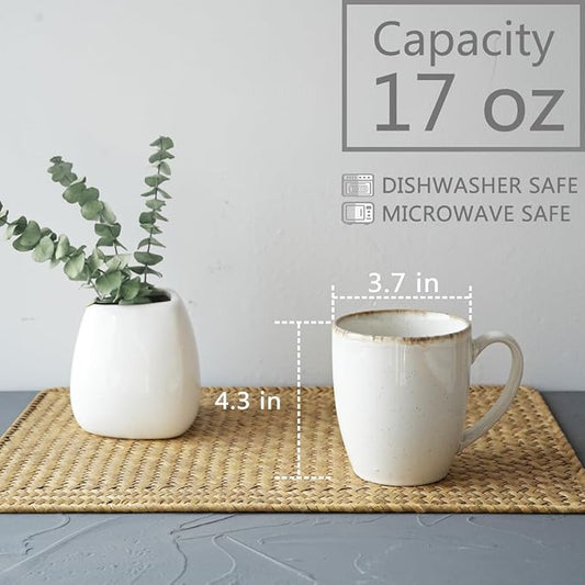 Bosmarlin Ceramic Coffee Mug Set of 4, 17 Oz, Coffee Cups with Big Handle, Microwave Safe, Unique Reactive Glaze (White, 17 Oz)